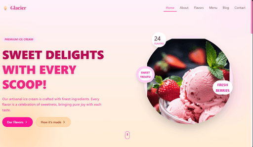 Soft pastel ice-cream site with dreamy gradients, rounded UI elements and playful flavor presentation.