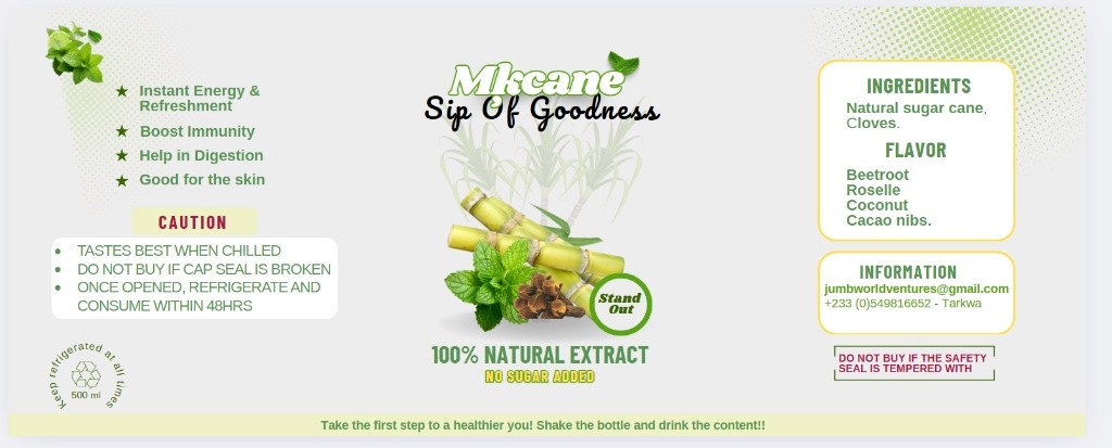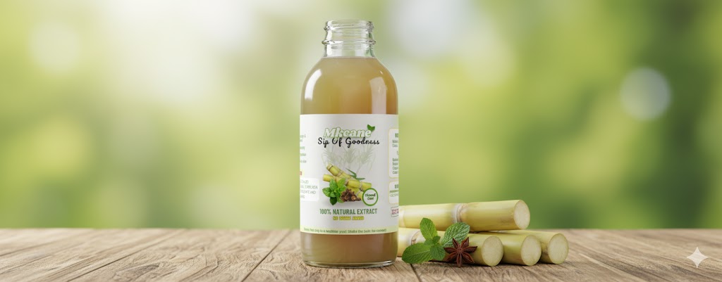 Fresh sugarcane label with vibrant green tones and organic visuals to represent health and nature.