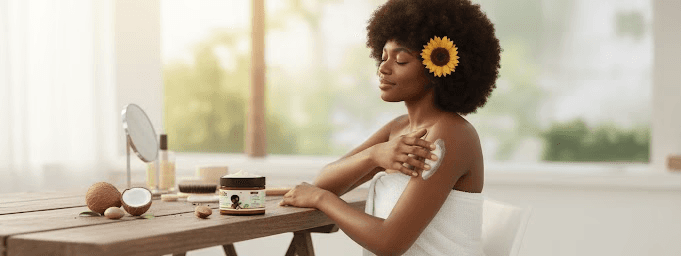 Luxurious shea-cocoa skincare label with earthy tones and soft fonts, representing natural beauty and nourishment.